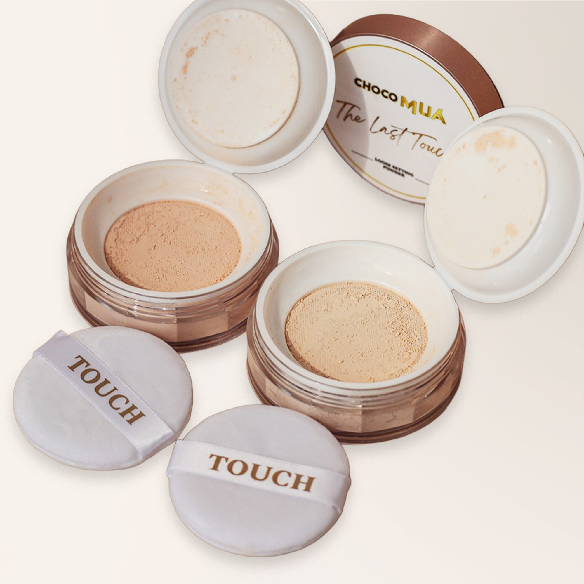 The last touch, conține un pouder puff cu care vei putea aplica produsul cu ușurință. De asemenea pentru a obține un aspect mai natural, poți folosi pensula Choco Mua Blusher.